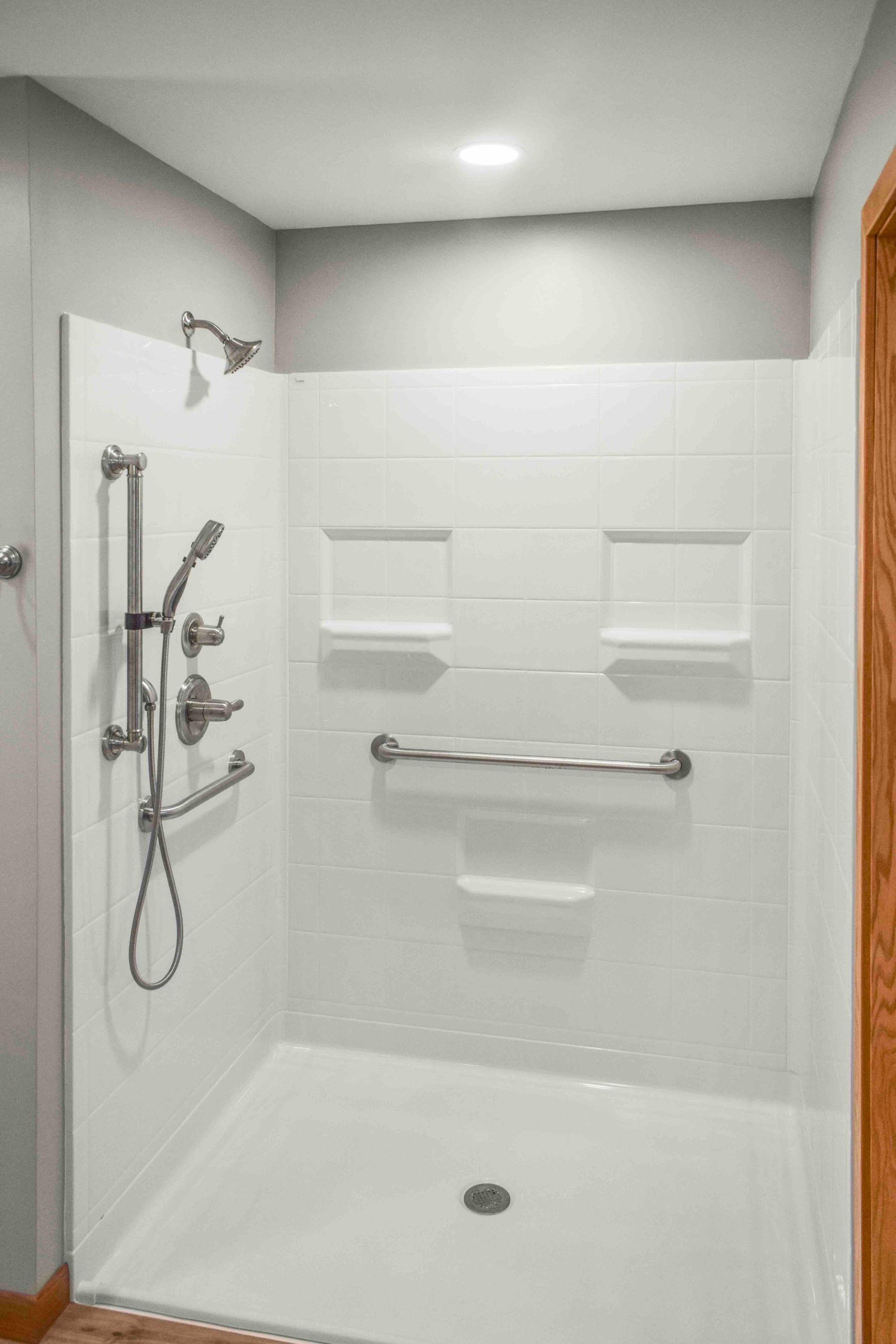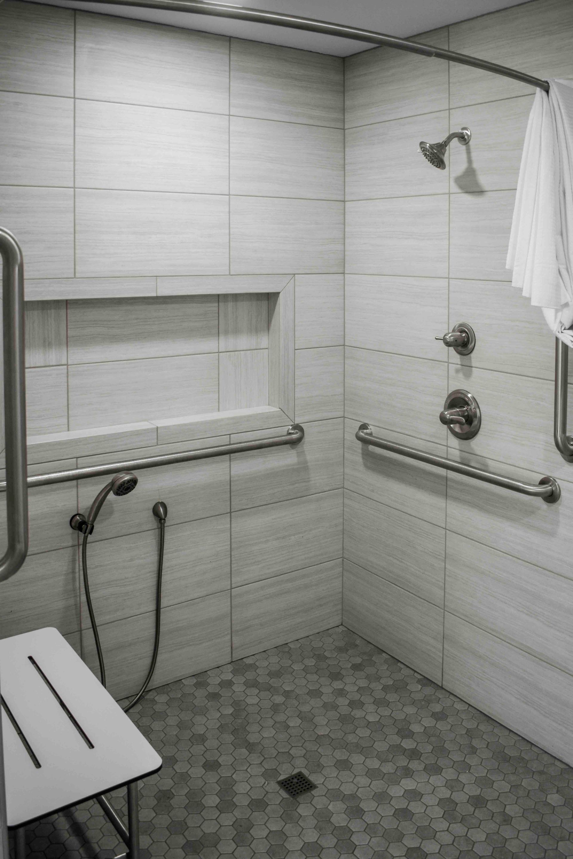 For tub and shower areas, place bars for the moments when people shift weight, stepping in, turning, sitting, and standing in a shower compartment, whether transfer type shower or a roll-in type shower. Many plans include a vertical grab bar near the entry edge or bathtub rim, plus a side wall grab bar or horizontal grab bars on the long wall or control wall near the permanent seat and hand shower. Often, the side wall grab bar and rear wall grab bar are set around 33 to 36 inches above the tub or shower floor, using appropriate grab bar length. Finally, seal all fastener openings in wet areas and avoid exterior wet walls when possible in Michigan, because plumbing, insulation, and vapor control layers can complicate the grab bar installation.